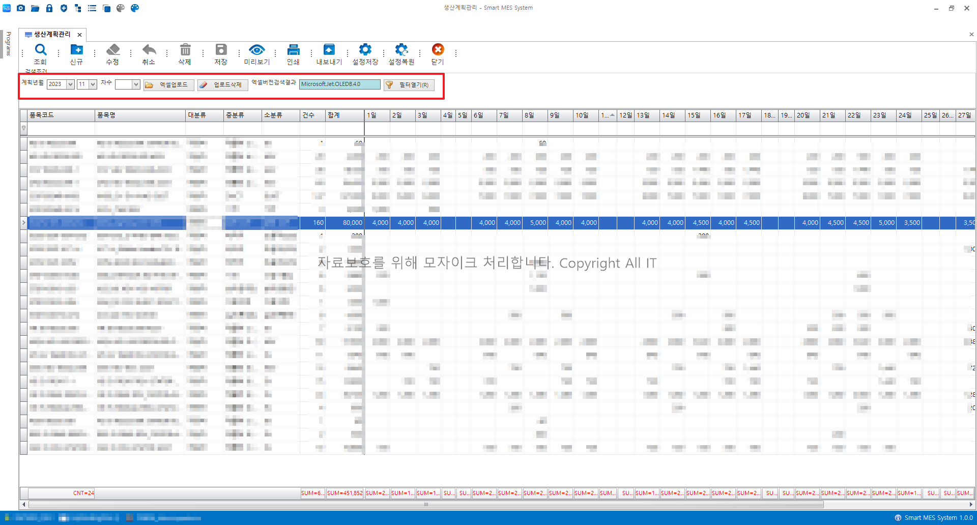 - 생산계획이 등록된 엑셀을 업로드할 수 있다.
