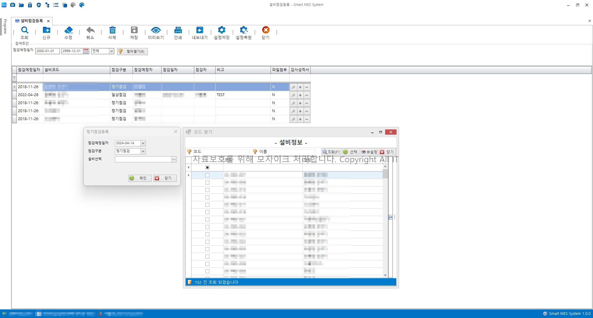 생산에 사용되는 설비의 점검 이력을 등록하여 관리한다.
