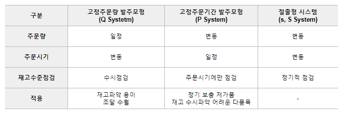 - 필요한 품목을, 필요한 수량만큼, 필요한 시기에 최소의 비용으로 공급하는 것이 목적
