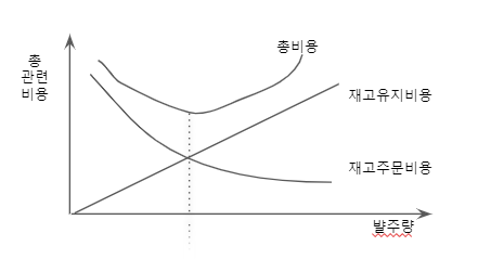 - 발주량을 크게하면 재고 1단위당 비용 감소