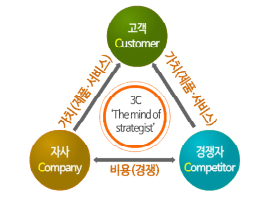 3C 분석이란 자사(Company), 경쟁사(Competitor), 고객(Customer) 에게 제공 가능한 가치를 분석하여 기업의 내외부 핵심 요소를 도출하여 전략에 활용하는 분석도구를 말한다.