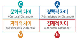 글로벌 시장 진출 시 타당성 검토를 위한 모델이다. 차이를 분석하여 원격지의 시장 상황을 판단할 수 있는 지표를 제공한다. 문화적(Cultural), 정책적(Administrative), 지리적(Geographic), 경제적(Economic) 차이를 분석한다.
