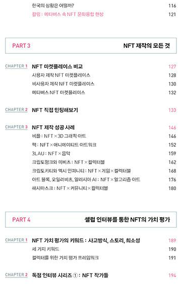 책은 기술적인 용어가 너무 많아 일반인에게 어렵다. 인터뷰가 책 내용의 절반에 해당하여 NFT에 대한 내용이 많지 않다. 게다가 NFT를 이용해서 누가 얼마를 벌었는지, 또는 어떻게 NFT를 이용해 돈을 벌고 있는지에 대해 너무 많이 반복되어 있다. 그럼에도 불구하고 새로운 기술인 NFT에 대해 인사이트를 얻기에는 충분해 보인다.